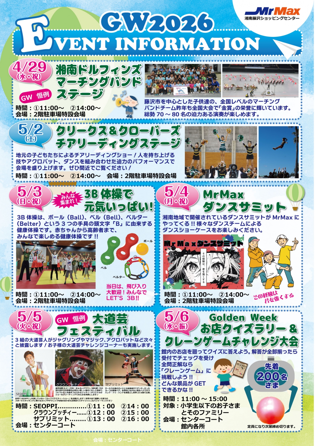 湘南ドルフィンズによるマーチングバンドステージなど今年のGWもイベント.盛りだくさん!