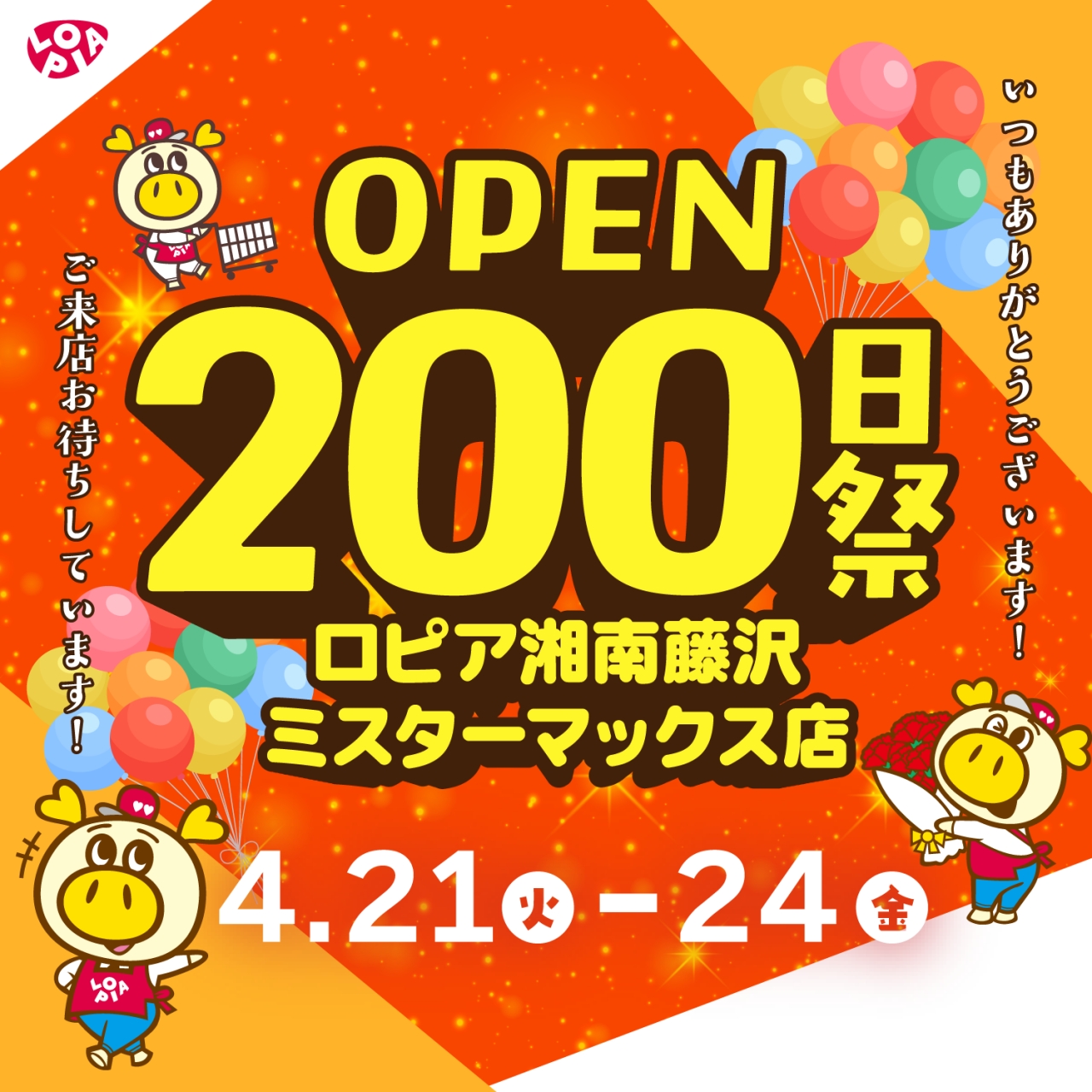 4/21(火)~4/24(金)でオープン200日祭を開催いたします♪